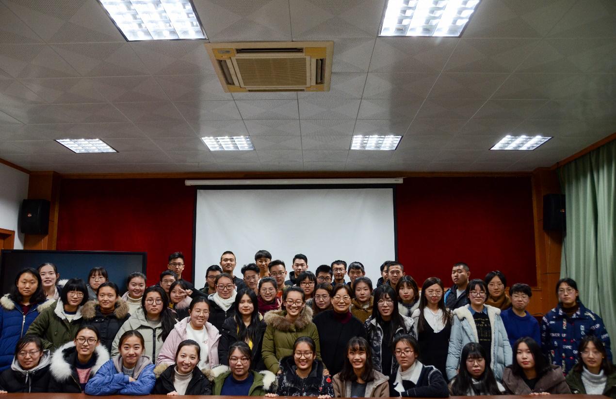 讲座中,姜云霞老师结合PPT和现场演示,为同学们讲解了关于举止、仪容等方面的知识,并结合同学们现实的面试经历,介绍了面试礼仪,幽默风趣的风格让同学们印象深刻。随后进行了互动环节,姜云霞老师对同学们提出的问题做出了详细解答。最后,全体同学上台与老师合影留念。