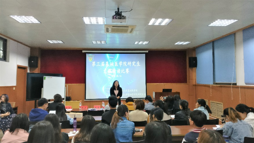第三届研究生文献精读比赛决赛在博雅楼103会议室举行,比赛由孙婷同学主持,院党委副书记戚昕致开幕词,侯琳、张蓓、于晓玲、董静、王俊、徐华敏、陈鹏7位教授担任评委,2018级近百名研究生到场观看与交流,男同性恋av