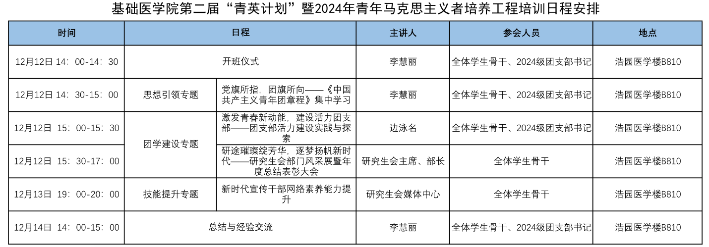 团委积极行动,精心筹备并成功开展第二届“青英计划”暨2024年青年马克思主义者培养工程培训班。本次培训涵盖了思想引领、团学建设、技能提升等多层次内容,搭建了一个宽广的学习与成长平台,促进了大学生骨干之间深入的思想碰撞与经验交流,取得了显著成效。现将相关安排及成果总结如下。