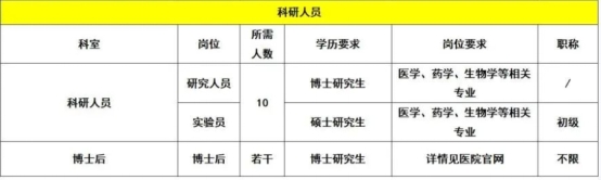 【招聘专业及要求】:基础医学、临床医学、中医学、中药学、中西医结合、公共卫生与预防医学、新医科等相关专业博士研究生