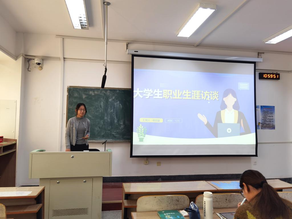 活动现场的气氛热烈而有序,每位同学都怀着对未来职业的憧憬与探索精神,精心准备并详细介绍了自己的生涯访谈人物。结合制作精良的 PPT,同学们以图文并茂的形式生动展示了访谈的精彩内容与深刻感悟,带领台下的老师和同学们深入了解了各行各业的真实工作状态、职业发展路径以及所需技能与素养。教师、科技工作者、自营企业家、企业高管,同学们的分享涉及到了社会工作的方方面面。