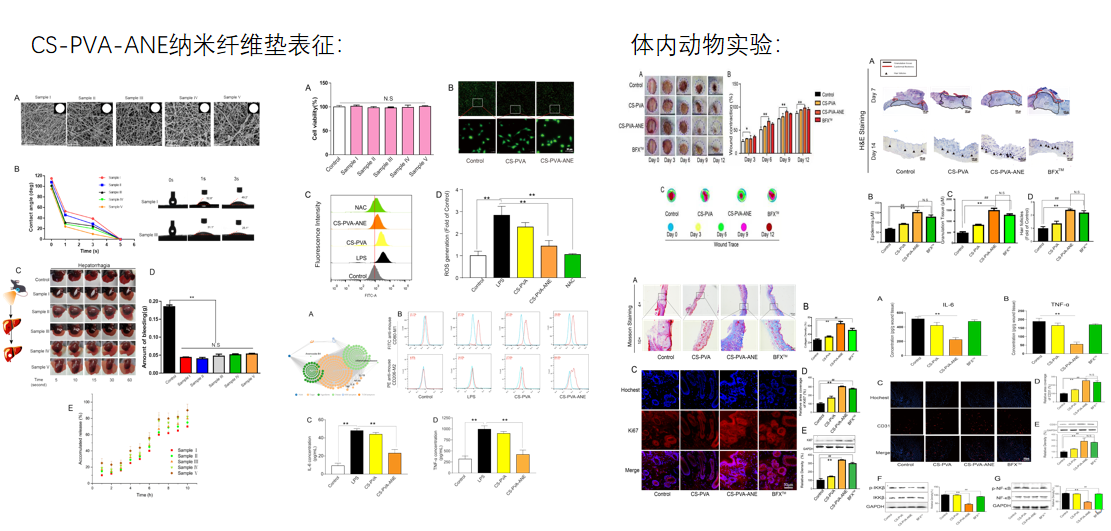 由于过度的炎症和伤口床中的血管生成受损,糖尿病伤口的愈合仍然面临着巨大的挑战。巨噬细胞向M2型表型极化的免疫调节可促进从炎症到增殖的转变,已被证明是改善糖尿病伤口愈合的有效方法。本文报道了用于促进血管生成和促进巨噬细胞向M2型转化的纳米纤维垫(CS-PVA-ANE)。CS-PVA-ANE纳米纤维垫具有良好的亲水性,生物相容性,止血性,药物缓释性,抗氧化能力和抗炎能力。全层糖尿病伤口模型的体内结果表明,CS-PVA-ANE可以通过快速的抗炎和血管生成以及M2巨噬细胞极化来快速促进糖尿病伤口的修复。这项研究通过将中药活性成分加载到纳米纤维垫上,设计了抗炎,抗氧化的生物活性材料,为糖尿病伤口的修复提供了高效策略。
