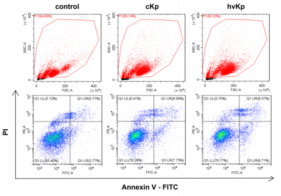 肺炎克雷伯菌(Klebsiella pneumoniae,Kp)是导致医院获得性肺炎和社区获得性肺炎的一种重要病原菌,通常分为经典肺炎克雷伯菌(cKp)与高毒力肺炎克雷伯菌(hvKp)两种类型。hvKp感染常造成高死亡率,其出现对临床细菌感染的防治带来严峻挑战。基于拮抗病原体抗免疫策略的免疫疗法是一种很有前途的治疗方案,而了解宿主-病原体相互作用下的免疫逃避机制是开发这一策略的先决条件。该研究构建了巨噬细胞体外感染模型和小鼠肺炎模型,探讨cKp和hvKp菌株感染对宿主细胞和先天免疫系统的影响,重点关注宿主-病原体相互作用背景下的炎症、细胞死亡和自噬。研究表明,与cKp相比hvKp能够抵抗巨噬细胞的吞噬作用,但通过促进促炎细胞因子和ROS的产生,诱导强烈的促炎反应,及损害自噬激、诱导细胞焦亡和凋亡导致细胞过度死亡,显著降低细胞活力和加剧组织损伤。上述结果在体内实验得到了进一步证实。该研究结果为肺炎克雷伯菌的致病机制提供了新的见解,有助于未来开发治疗该菌感染的新思路。