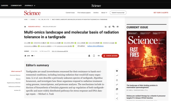 水熊虫是一种微小的水生无脊椎动物,可耐受超强辐射、高温、高压、低温、干燥等多种极端环境,甚至能够在外太空真空环境中生存,具有很高的科学研究价值和生物医学应用价值。研究团队发现,在水熊虫中起抗辐射作用的分子转入人源细胞后,可以显著提升后者的抗辐射能力,显示出重要潜在应用前景,为研制人类抵御超强辐射损害的“金钟罩”找到了理论依据。针对水熊虫抗逆机制的研究,将可能更新人类对生命系统基本构成原理和运行机制的认识。本项研究成果,开启了人类全面认识超强辐射耐受机制的大门。