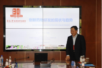 杜冠华教授讲座分为“新药研发的技术路线”、“新药发现的历史过程”、“新药的研发现状”、“新药研发的机遇与挑战”四部分。他从中西方药理学的发展历程、药理学科的特点、研究任务、新药临床前研究、天然产物药物研发、国际新药研发现状、天然药物的发现与筛选等方面的内容进行阐述,揭示了药理学的历史进程,突出了药理学研究贯穿天然药物研发全过程的重要性。